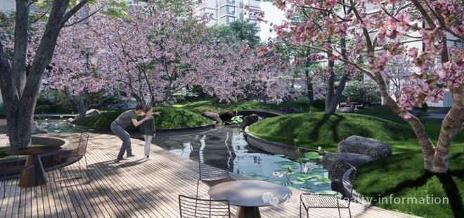 园林景观:约3.5万方园林 装下山水与人文园林为东方新中式风格设计,打造约35000㎡园林景观体系,一条600M的慢跑道,将园区串联起来。通过提炼吴冠中六幅经典作品中的六种意境,打造了“两轴六景”,自在山水,境在画中游的感觉,还原大自然流动的色彩,让归家或闲时,都是一场艺术的画境之旅。