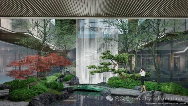 拥有约1800㎡下沉会所,一个集社交、商业一体的社区盒子,包括简餐/便利店等,同时融合吴冠中《瀑》打造高约9米,宽约4米的景观造型,呈现观水入园的效果。